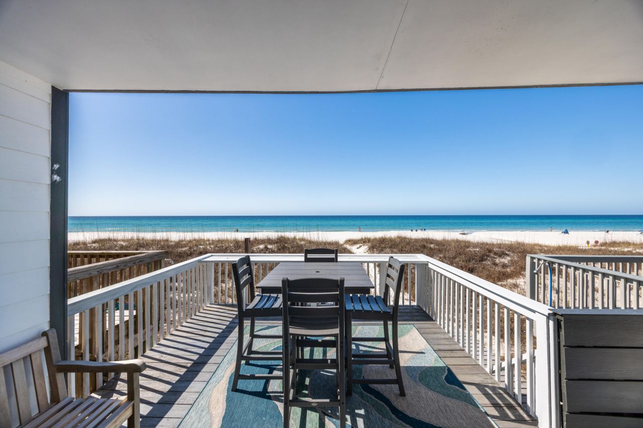 Fully furnished, NO HOA townhome with DIRECT GULF ACCESS at 17709 Front Beach Rd #2 in PANAMA CITY BEACH. Located directly on the sugar-white sands of the GULF, this TURNKEY BEACHFRONT PROPERTY offers STUNNING WATER VIEWS, open living spaces, and seamless indoor-outdoor coastal living. Enjoy TWO GULF-FACING BALCONIES, breathtaking sunsets, and crisp, salt-kissed air drifting in from water. Wake up to the sound of waves and unwind as the coastal breeze settles in each evening. Ideal as a SHORT-TERM RENTAL INVESTMENT, second home, or full-time residence with NO HOA RESTRICTIONS. Positioned on the desirable west end near PIER PARK, dining, and entertainment, while still offering a quieter beachfront setting. A RARE OPPORTUNITY for GULF-FRONT OWNERSHIP with flexibility and strong income.